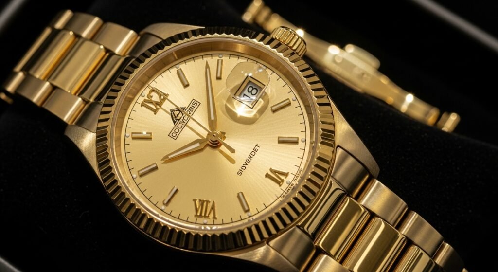The watches are of gold-tone that would make any look special and rich. This style is also polished to look good when worn either with formal attire or daily attire. The gold is soft and shines, indicating confidence and elegance without being too flashy. A good gold-coloured watch has been made with taste and will feature a strong sense of paying attention to detail, and wearing accessories that uplift personal style in a very professional but not flashy manner.