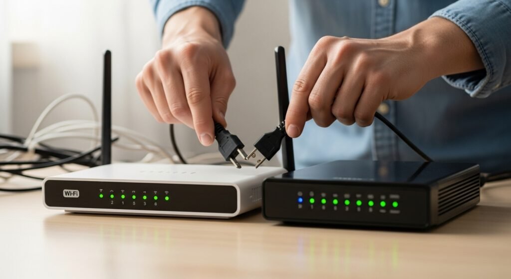 It has been observed that restarting your router and modem rejuvenates the connection and removes the transient problems. These devices might become slower with time, as a result of memory congestion or background errors. They are reconnected to the internet service provider by a simple restart. This action usually solves problems with speed and connectivity.