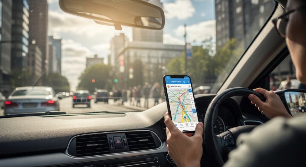 Travelers are affected by navigation apps that apply AI to recommend the quickest routes, depending on current traffic.