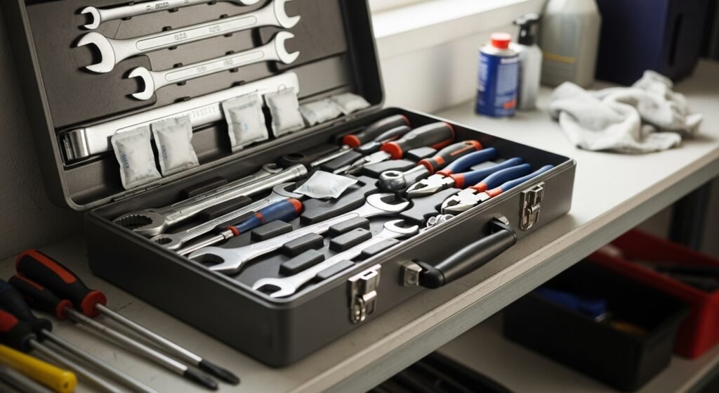 Moisture is the worst enemy of the tools. Stash your toolkit in a dry place and may include silica gel packets or small dehumidifiers during the wet seasons.