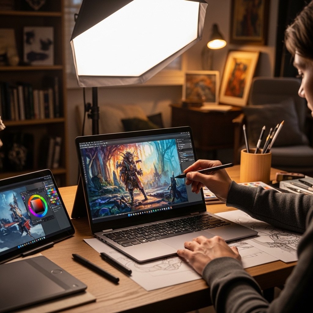 Creative professionals benefit from the flexible form factor, which allows for sketching, editing, and designing in different orientations. The larger canvas and touch capabilities support more natural workflows for artistic and technical tasks.