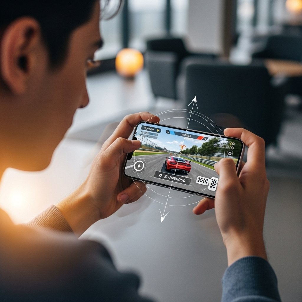 The gyroscope tracks rotation and orientation. It enhances gaming, AR apps, and camera stabilisation, giving smoother movements and accurate tilt detection.
