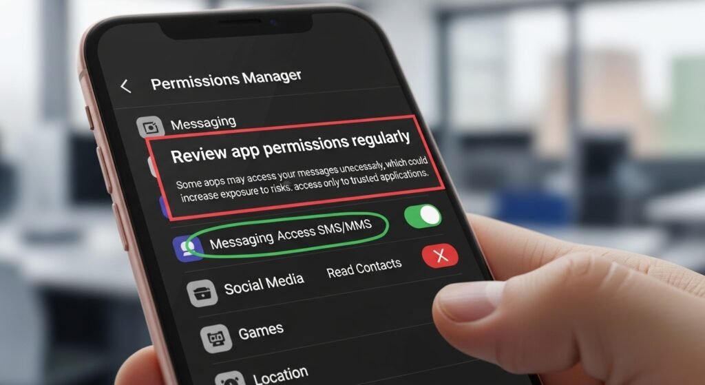 Review app permissions regularly. Some apps may access your messages unnecessarily, which could increase exposure to risks. Limit access only to trusted applications.