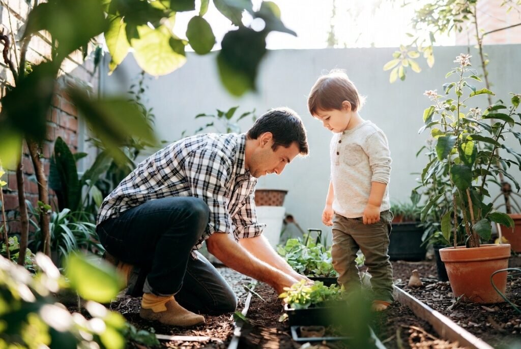 Gardening is a development of patience and admiration for nature. It instructs in the fact that results require time and focus. A gardening father is an example of consistency, care and silent contentment by steadily doing things and not expecting immediate results.