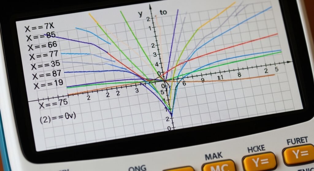 Enter equations using Y= button. The lines in the poem delineate each role. X refers to the variable in type expressions. This is what the calculator is graphically telling. It is possible to put a few functions at a glance.