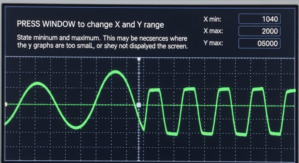 PRESS WINDOW to change X and Y range. State minimum and maximum. This may be necessary in instances where the graphs are too small, or they are not displayed on the screen.