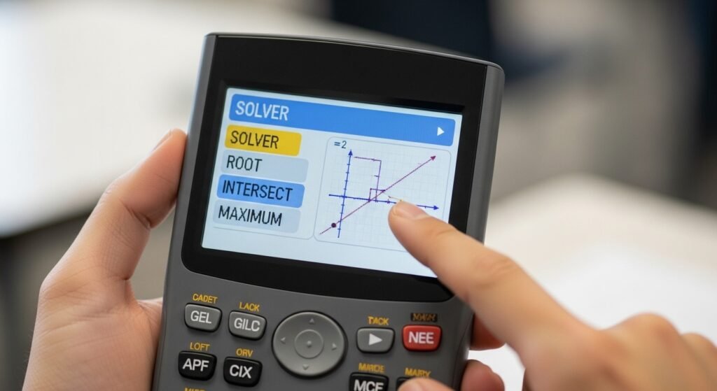 A number of the calculators have a SOLVER or a CALC menu. There may be roots, intersections or maxima. Make a choice by clicking on screen instructions.