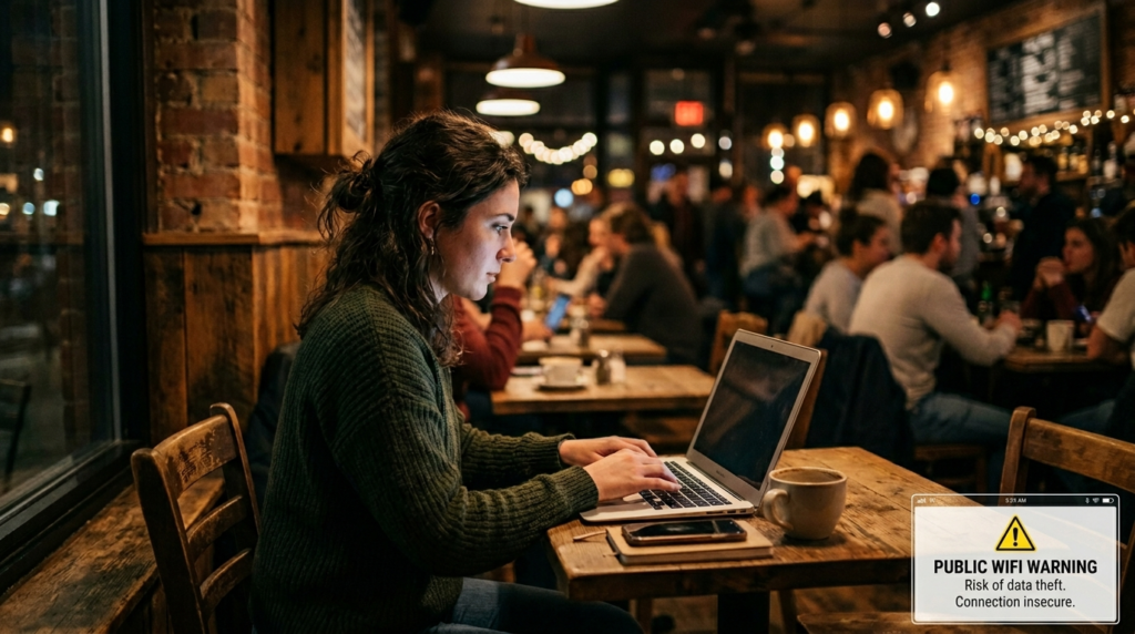 Most public Wi-Fi doesn’t guard data well. When the connection seems unsafe, skip logging into personal accounts or sending money.