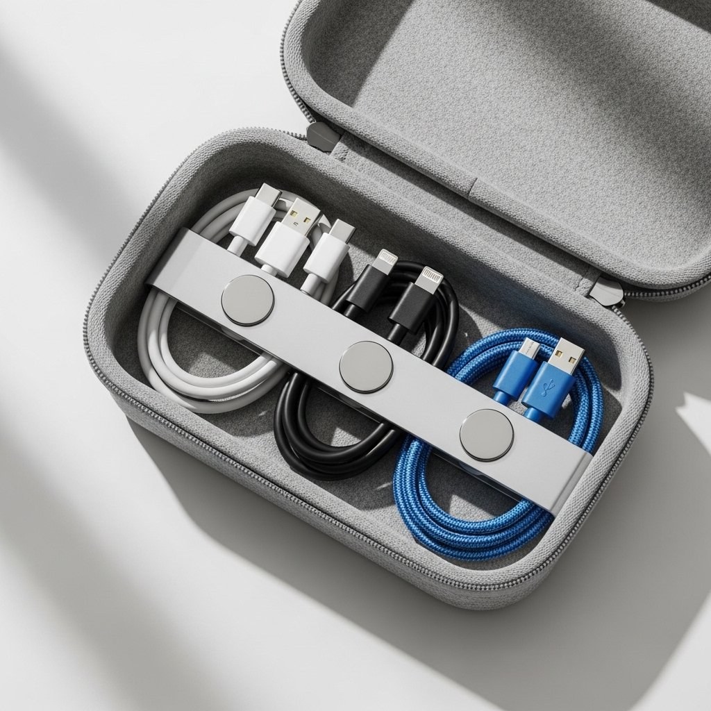 Tangled wires waste time and cause frustration. A magnetic or compartment-based cable organizer keeps charging cables neatly stored, making it easy to find the right one instantly when needed.
