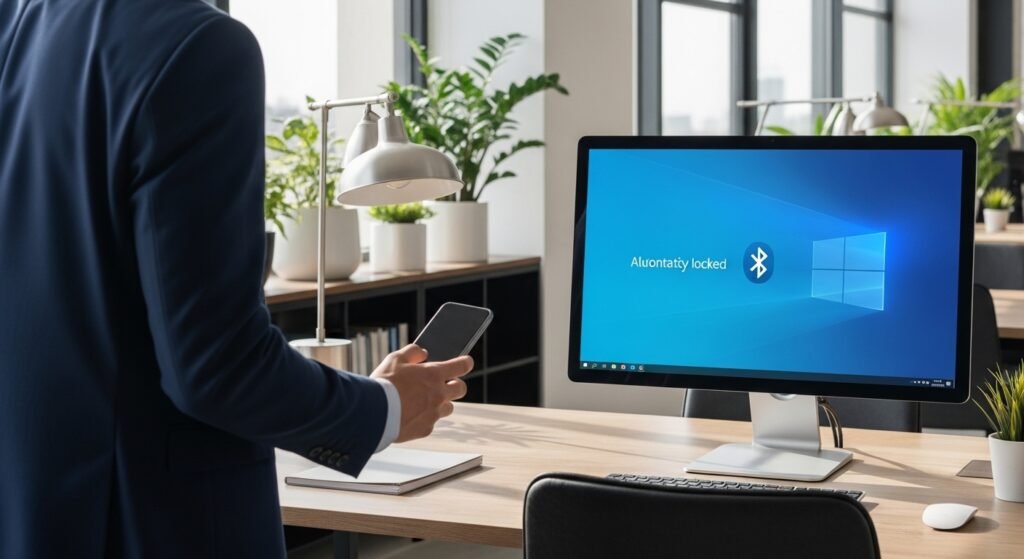 Dynamic Lock locks your computer automatically when you leave it unattended should your paired Bluetooth device, which in this case is your phone, leave range.