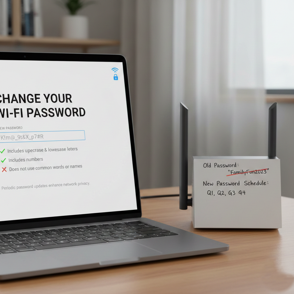 Don’t use personal information in your Wi-Fi network name. A neutral name prevents potential attackers from guessing ownership, address, or device type. This small change reduces unwanted attention and limits unnecessary interest from nearby unknown connections.