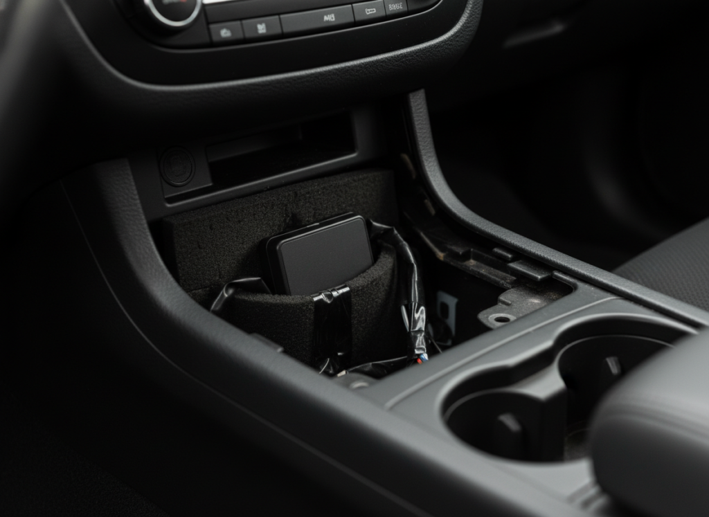 A covert GPS device communicates the live position of the vehicle via an application. It helps in recovery operations and provides the owners with comfort whenever the car is parked for longer durations.