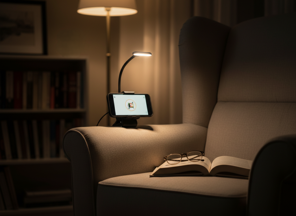It is a soft-glow clip light that can be fitted on the phone stands or cases. It offers concentrated illumination to read or make a video call in dark conditions without interfering with the surrounding spaces.