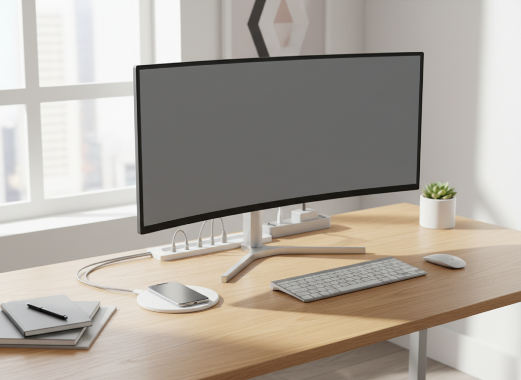 This little device is used to store charging and data cables in workplaces tidily. It eliminates the possibility of wires slipping behind desks and clutter. It also simplifies access to cables when charging the phone daily.