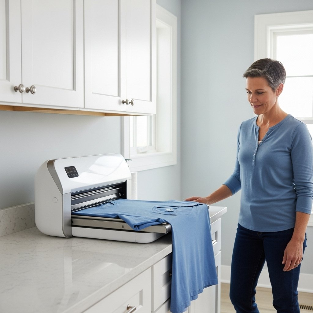 This countertop appliance folds common garments after drying. It recognises fabric types and adjusts pressure accordingly, saving time on repetitive tasks while keeping clothing neatly arranged.
