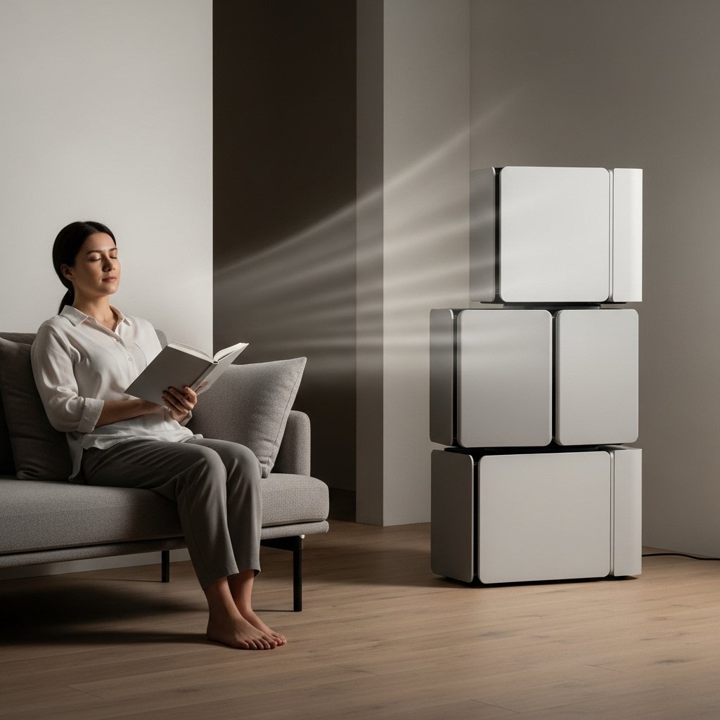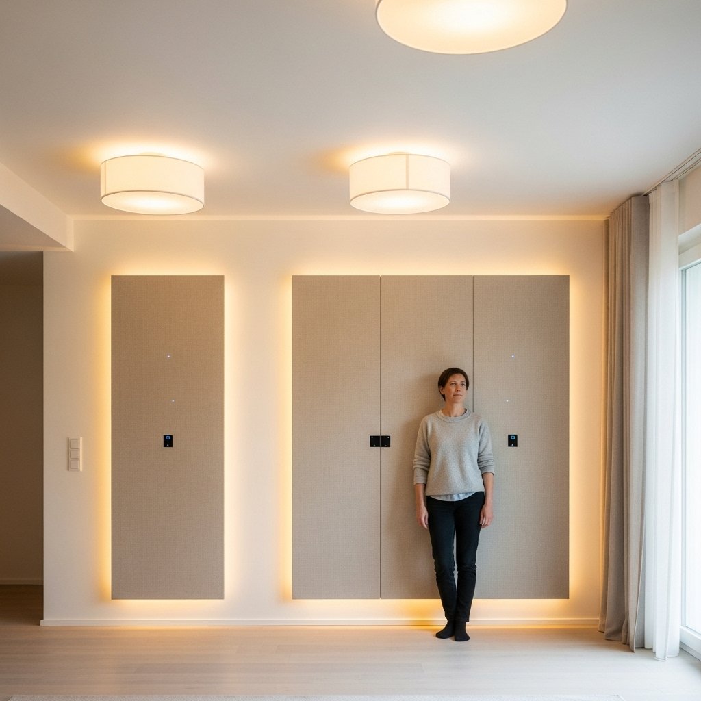 These wall panels regulate the temperature in each room based on motion and humidity sensors. They save energy by heating or cooling occupied rooms and achieving a stable feeling indoors throughout the day.
