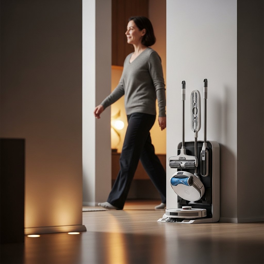 Unlike single robots, this base station manages multiple cleaning tools. It coordinates vacuuming and mopping schedules, stores equipment, and reduces manual setup, making floor care more consistent and less noticeable.