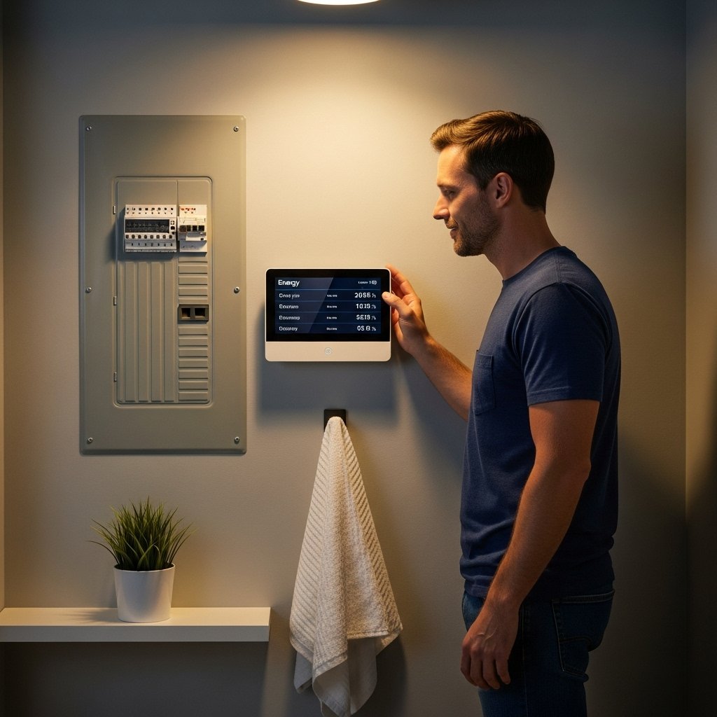 Installed near the power panel, this device tracks appliance-level energy use. It presents clear summaries rather than technical charts, helping households understand consumption patterns and make informed adjustments.