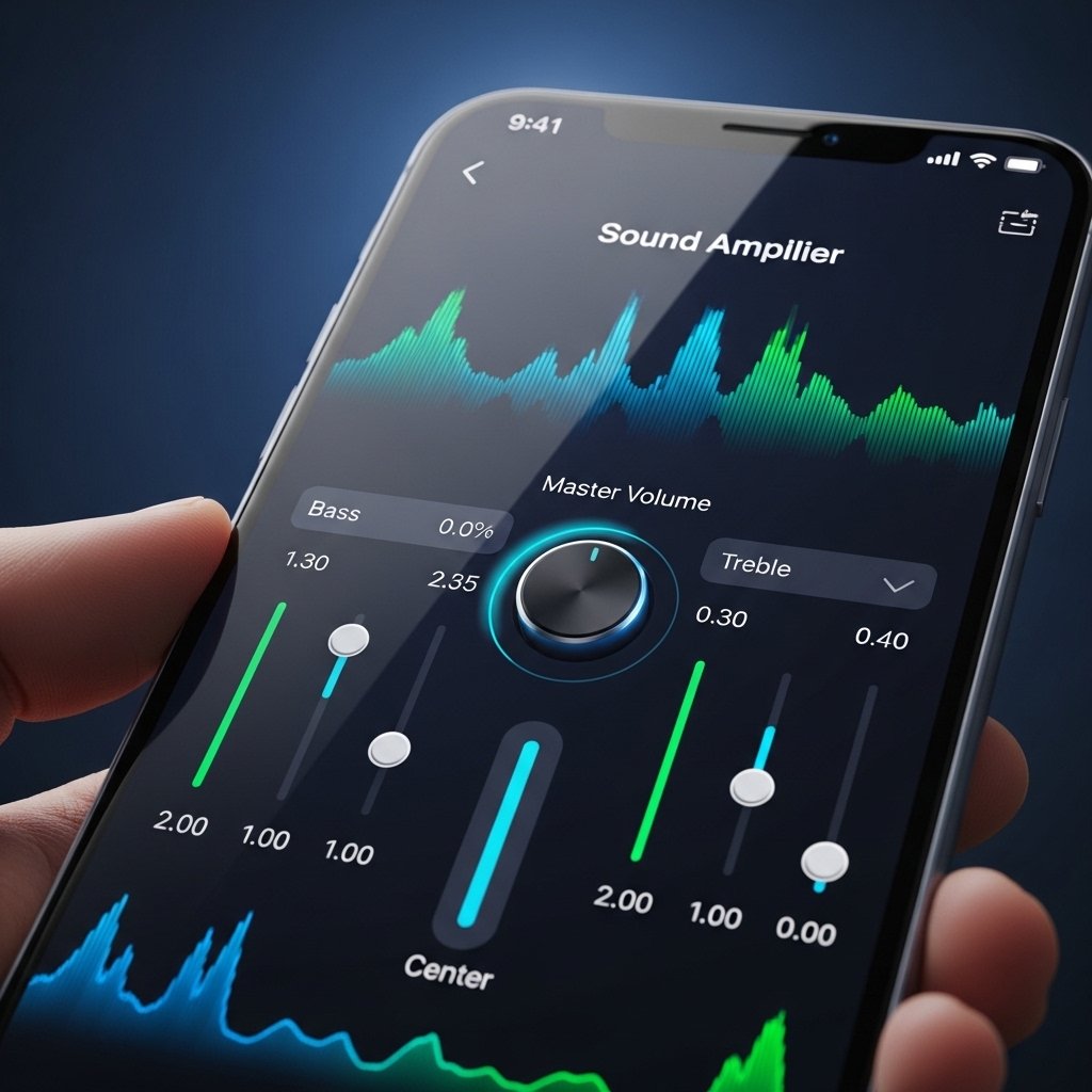Sound amplifier enhances surrounding audio when using headphones, making conversations and environmental sounds clearer, especially in crowded or noisy areas.