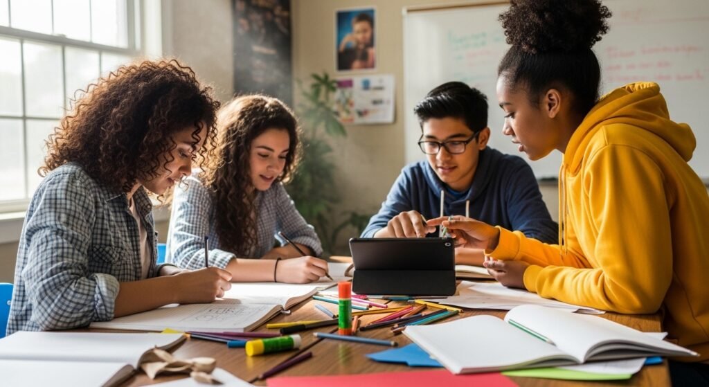 It also carries group play, which learns to share and co-operate, in opposition to conflicts. Children are instructed to share, to be sharing. Communication is realized through intercourse. Goal orienting aids confrontation with playing.
