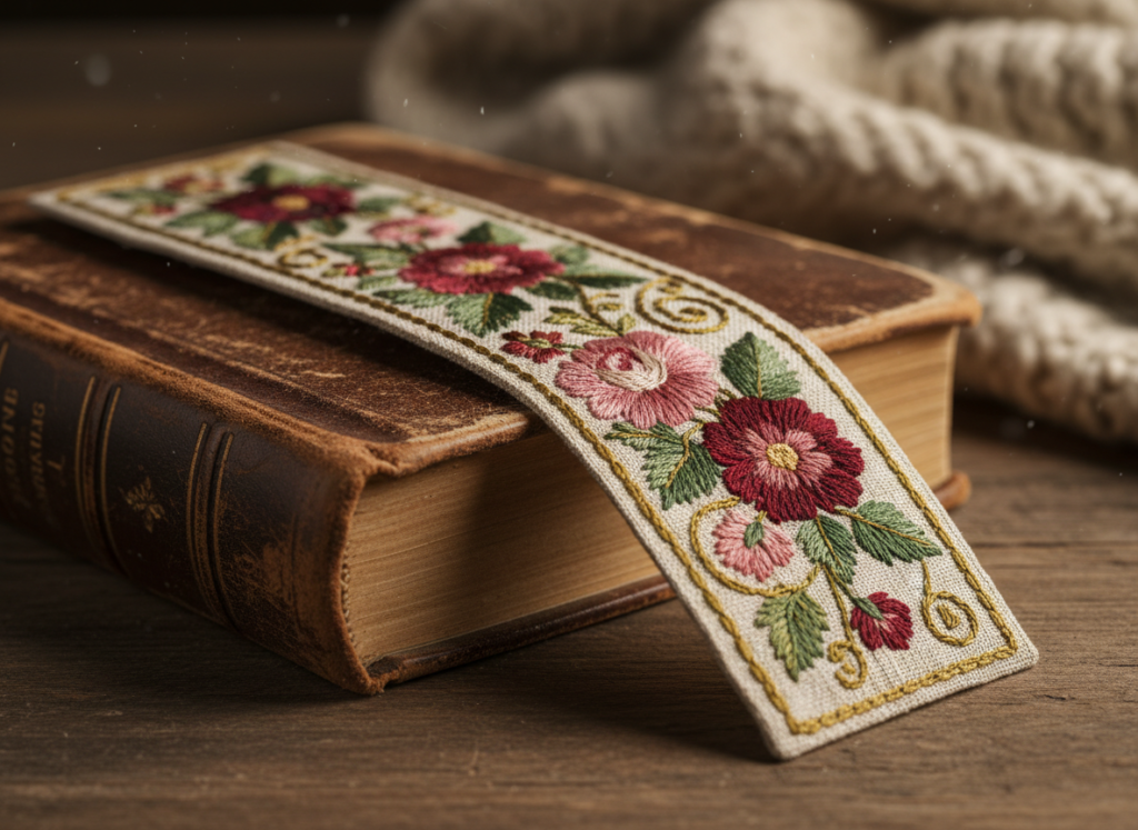 A fabric bookmark rests lightly between book pages. It protects paper from bending. The stitched edges feel smooth. It also helps readers return easily to favourite chapters. This gift suits study spaces and reading nooks.