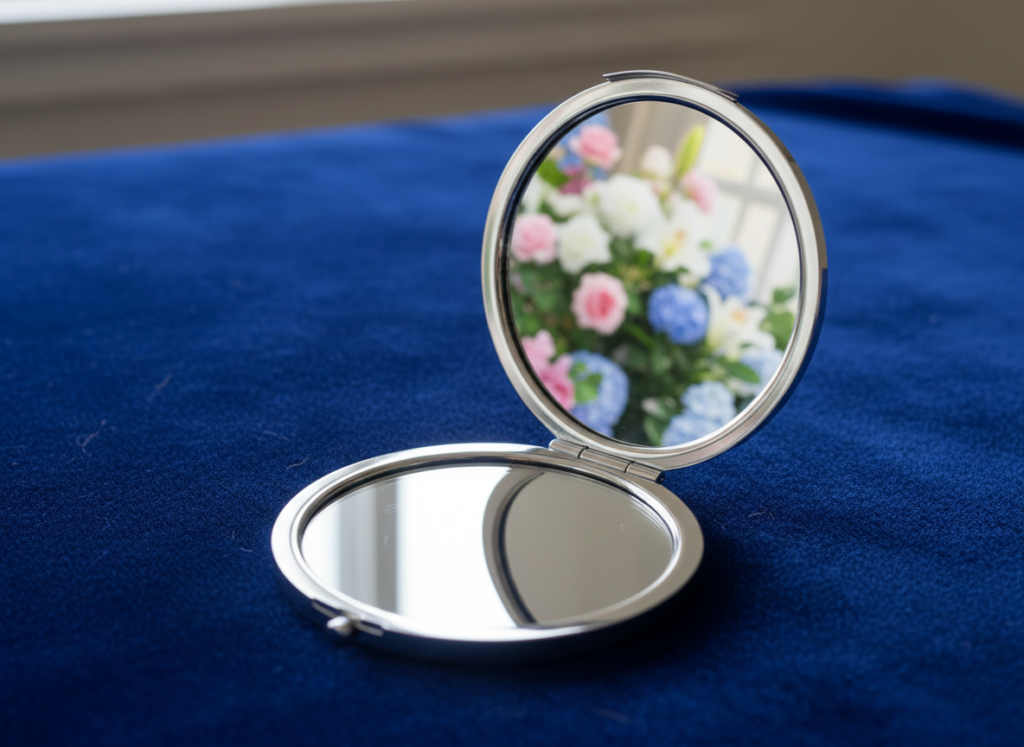 A slim pocket mirror fits into handbags and desk drawers. It helps with quick grooming. The smooth surface reflects clearly. The compact size keeps personal items organised. It also protects from scratches and keeps makeup checks neat.