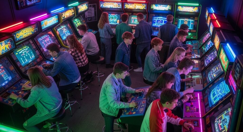 Arcades were crowded places of social interaction as teens used it to mingle in and play games and score big points. Youth entertainment was characterized by the flashing lights and coin boxes atmosphere.