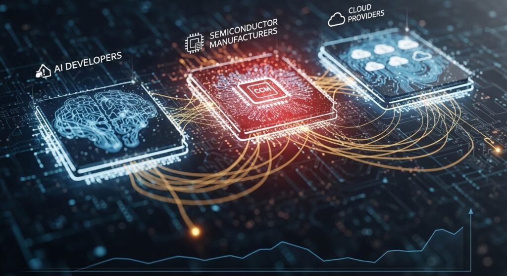 Other researchers refer to the intertwined investments between AI firms, semiconductor manufacturers, and cloud services. Although the team warps the development process, it may also overvalue it.