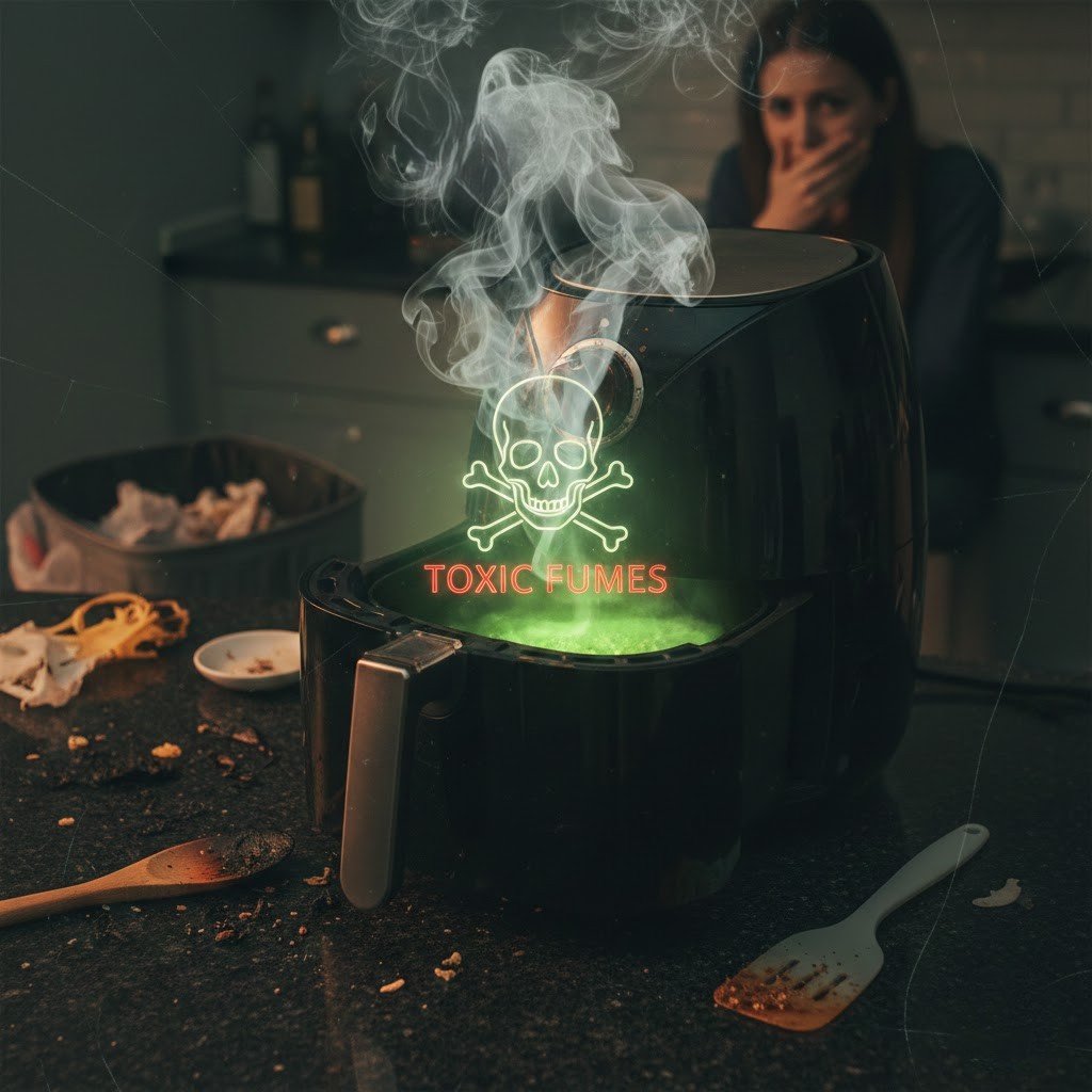 The least expensive versions of the fryer or parts made of poorly processed plastic may emit fine plastic particles or smoke when used over and over and heated.